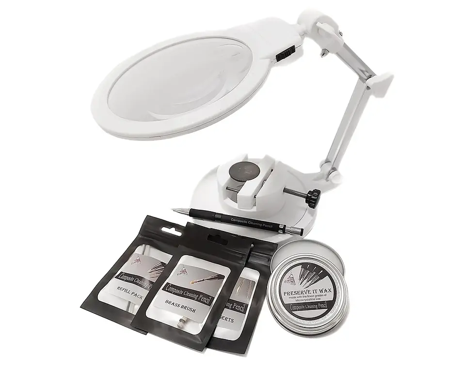 RCB Diamond dust 7 pin cleaning kit for ancient coin cleaning with wooden box
